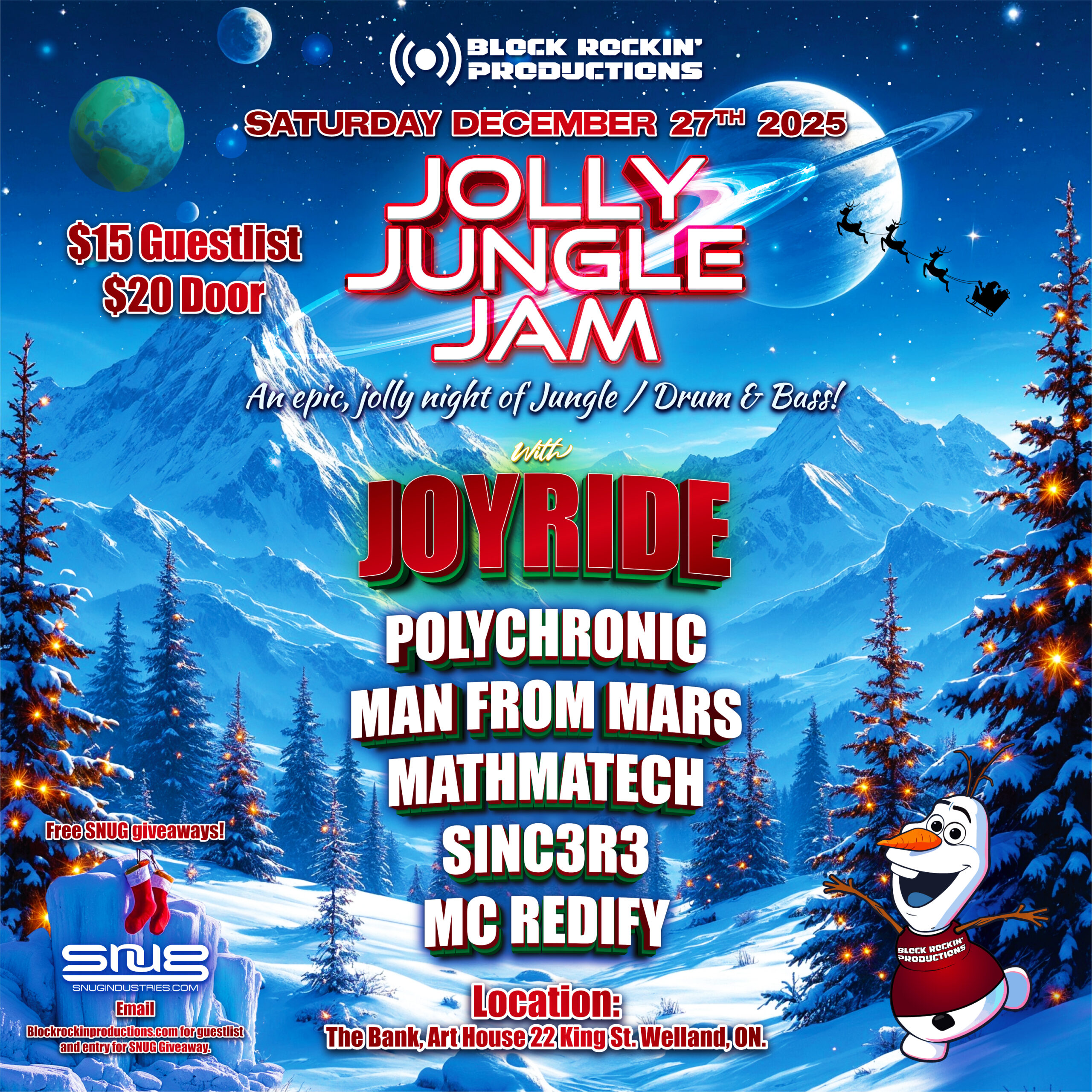 BLOCK ROCKIN' PRODUCTIONS are back just in time for the holidays! Saturday December 27th get ready for a Jolly Jungle Jam featuring our special guest for the evening JOYRIDE!